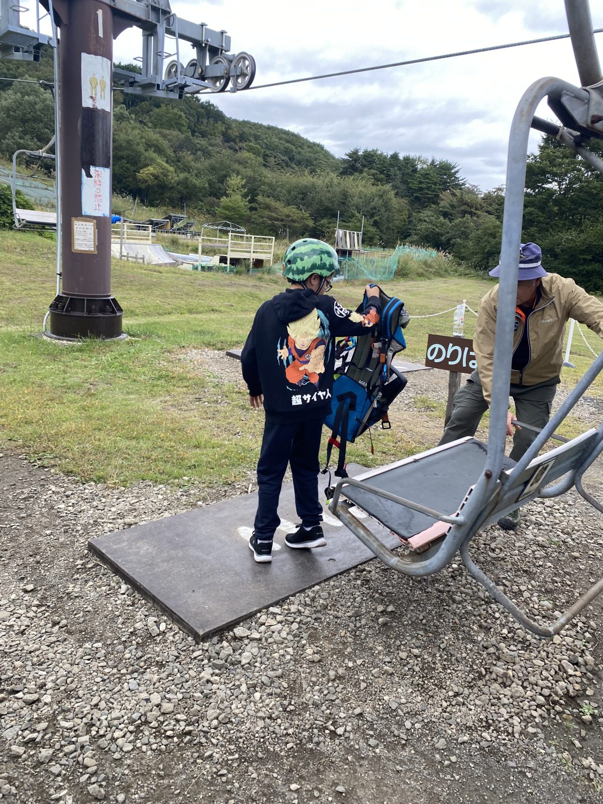 リフト乗り場のスタッフさん、子供達を乗せるのに細心の注意を払ってくださり、無事乗車。