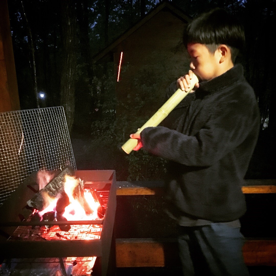 器用で働き者の夫は、息子とあっという間にテントを建て、火をおこし~