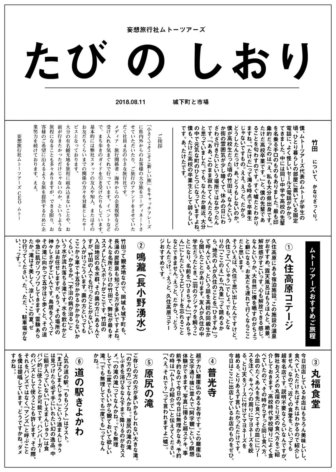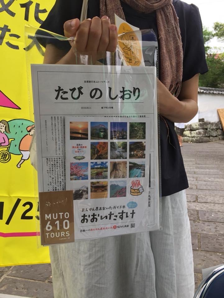 今回、以前、大分県竹田市で開催されたマルシェイベントに出展した時に、ブースに来てくださったお客様にお渡しした、この日、このイベント限定のたびのしおりをお見せします(誰が喜ぶんだ)。