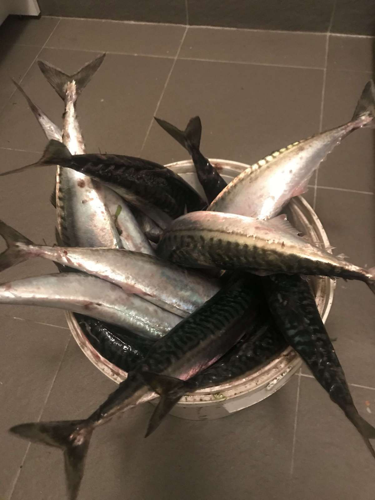 なんと、手にした大きなバケツには丸々と青光りした身が溢れんばかりに突っ込まれてる。