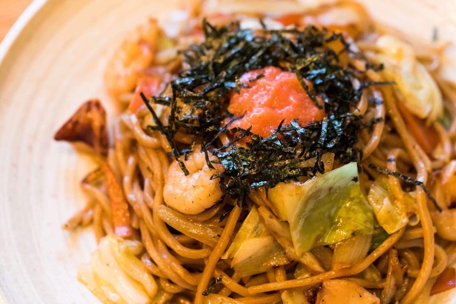 シーフードの焼きそばに明太子かかってんだもん。極悪。