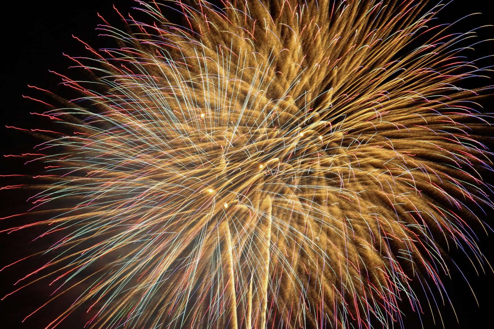 花火が大きすぎて、横からでもしたからでもない、「斜め下から見た花火」ご覧ください。