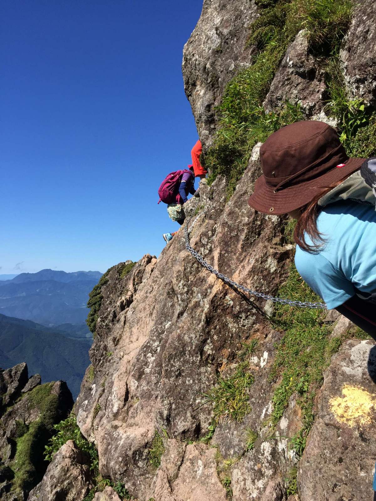 由布岳、あ、チェーンとかつかうんですね、岩のヘリとか、歩くんですね。