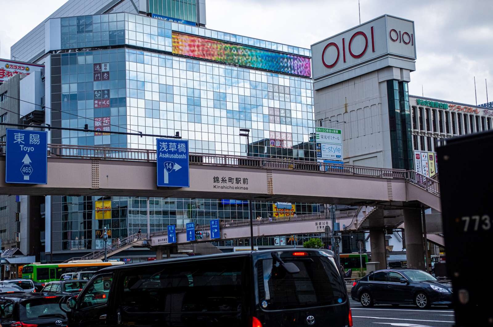 ビルの合間に一駅先の押上にあるスカイツリーが見える。ためしに薄目で見てみても。…残念ながら南山タワーには見えてこないし、台北101にも変身はしてくれない。紛れもなくここはジャパンなんだよなぁ。