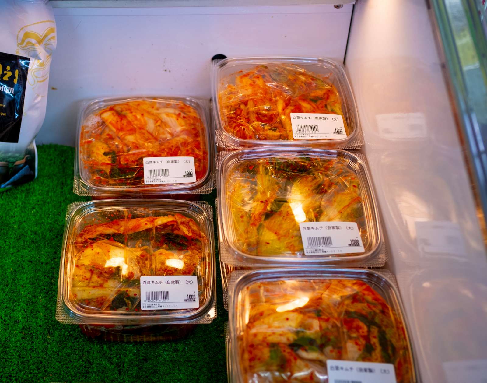 店内を右回りにゆっくりと見て行く。キムチがおいしそう。ナムルなどのおかず類は300円台。やすい。徐々に気分が上がってくる。明日、キムチと卵のナムルは作る予定だから、キムチは買って帰ろう。うん、これはおいしそう。1kg、5kgと大きな袋に入っているキムチもあるけれど、今日は我慢。