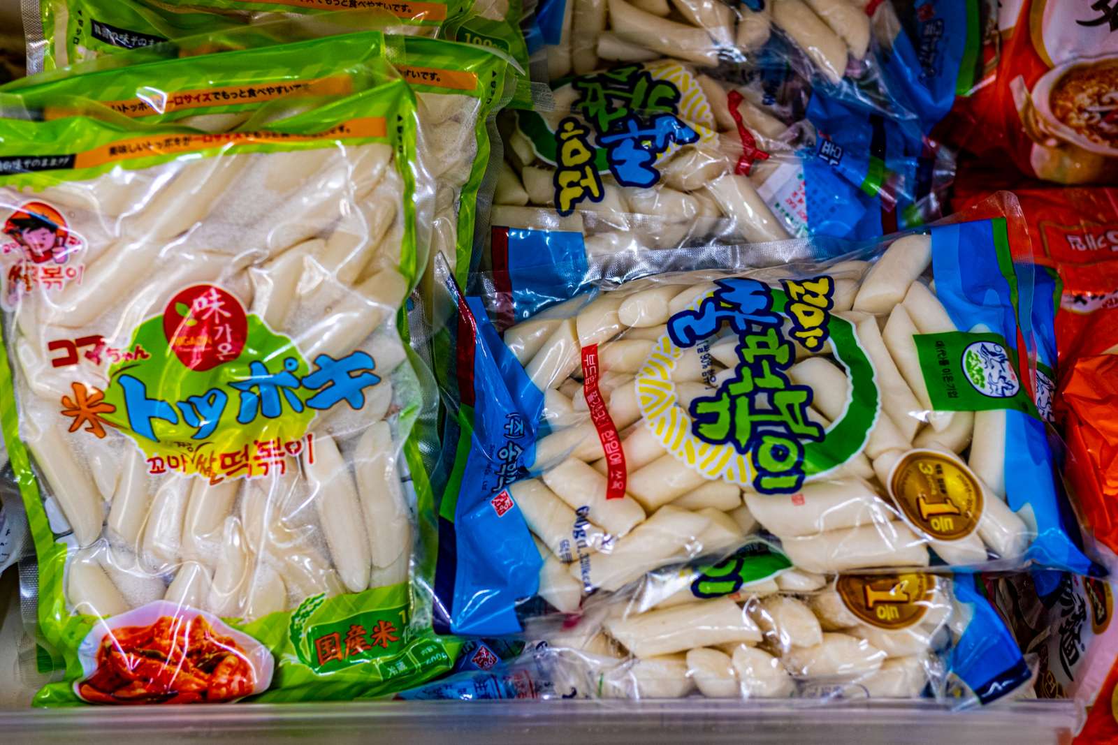 トッポキ用のトック(お餅)。ちょうど「ビュティーインサイド」というドラマで、おいしそうな辛いトッポキを見たばかり。おやつのイメージが強いトッポキだけれど、焼酎にも合うはず。おっきな鍋で辛いチーズトッポキも作ろう。トックも買い物カゴにイン。トッポキといえば、ソウルの新堂洞にあるトッポキタウン。ラーメンに揚げ餃子も入ったトッポキの鍋が美味しかったんだよなぁ。「ワタシハイマ、シンダンノトッポキタウンニイル」
