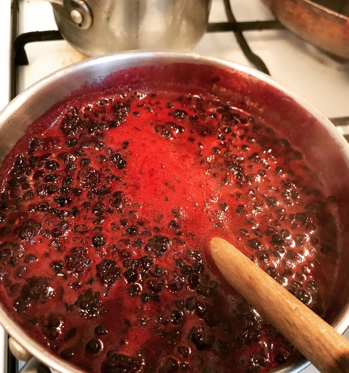 甘酸っぱい香りが家中に満ちるジャム作りは楽しい。エルダーベリー、香りはなかなか良い感じ。