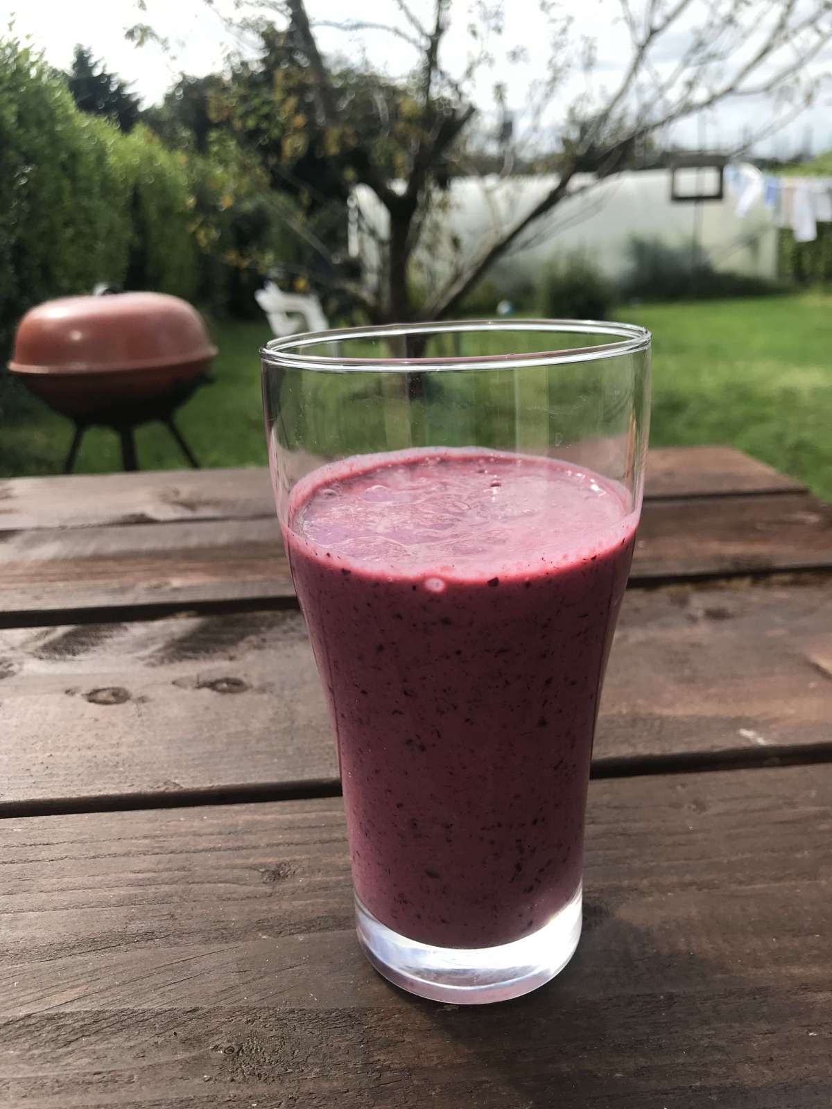後日一人でスムージーも作りましたが、ブレンダーで細かくしても残るエルダーベリーのブツブツ感はちょっと不快でした。