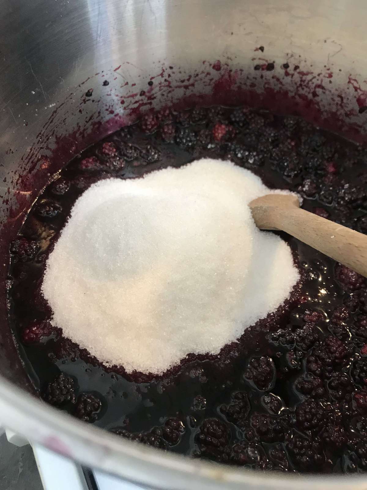 とりあえず、ちょっと前に摘んで冷凍していた少量のブラックベリーも一緒にジャムにしました。