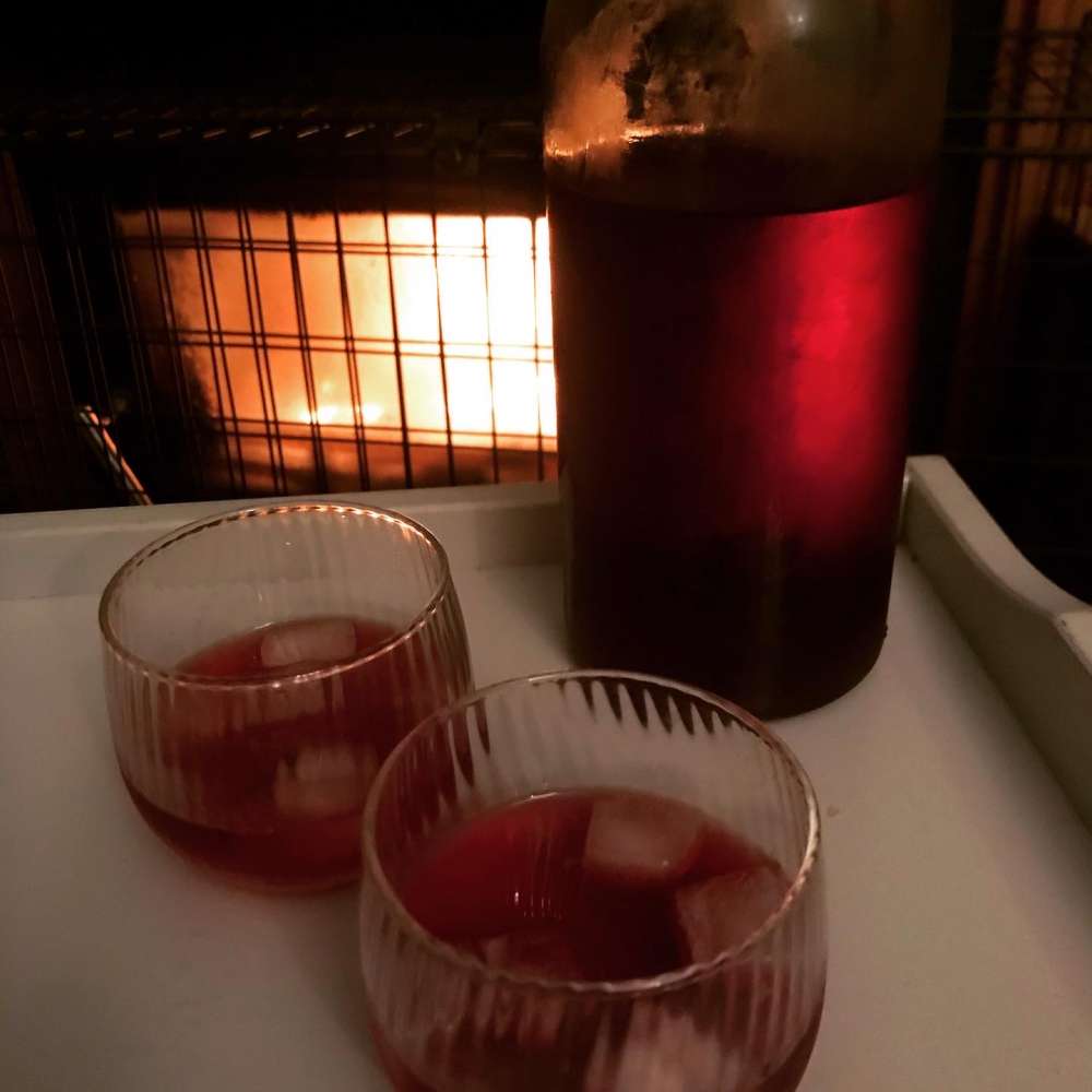 ちょうど一年前に友人達と摘んだsloesをジンに漬けて作ったsloe gin、丸一年経ったボトルを初めて味見することに。